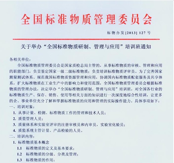 關于舉辦“全國標準物質研制、管理與應用”培訓班的通知