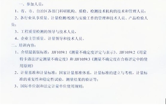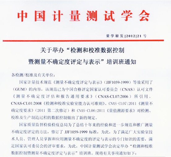 關于舉辦“檢測和校準數據控制暨測量不確定度評定與表示培訓班”的通知