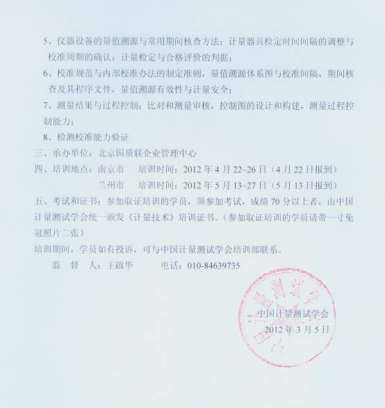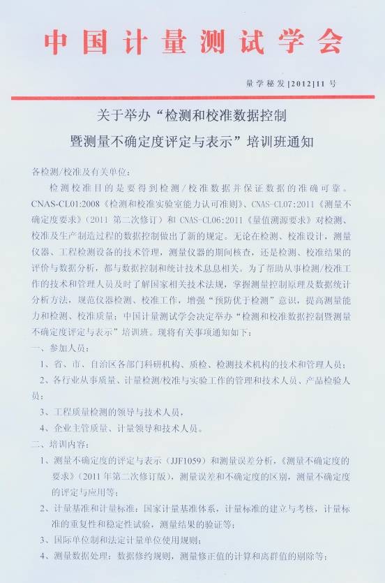 關于舉辦“檢測和校準數據控制暨測量不確定度評定與表示培訓班”的通知