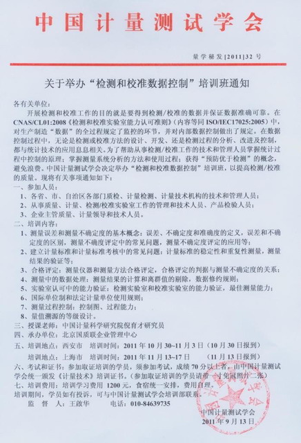 關于舉辦“檢測和校準數據控制培訓班”的通知