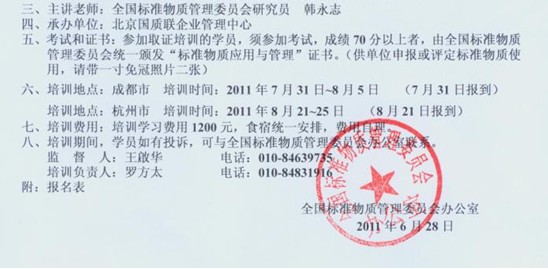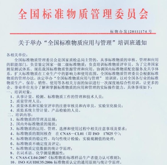 關于舉辦"全國標準物質應用與管理"培訓班通知