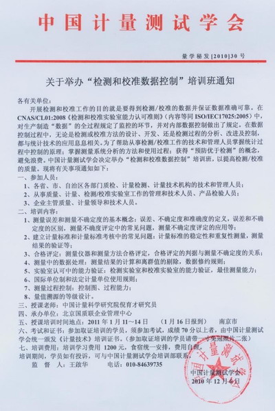 關于舉辦“檢測和校準數據控制培訓班”的通知