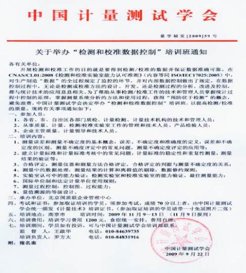 關(guān)于舉辦“檢測和校準(zhǔn)數(shù)據(jù)控制”培訓(xùn)班的通知