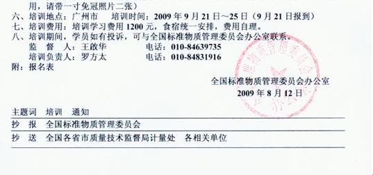 關于舉辦“全國標準物質應用與管理”培訓班的通知