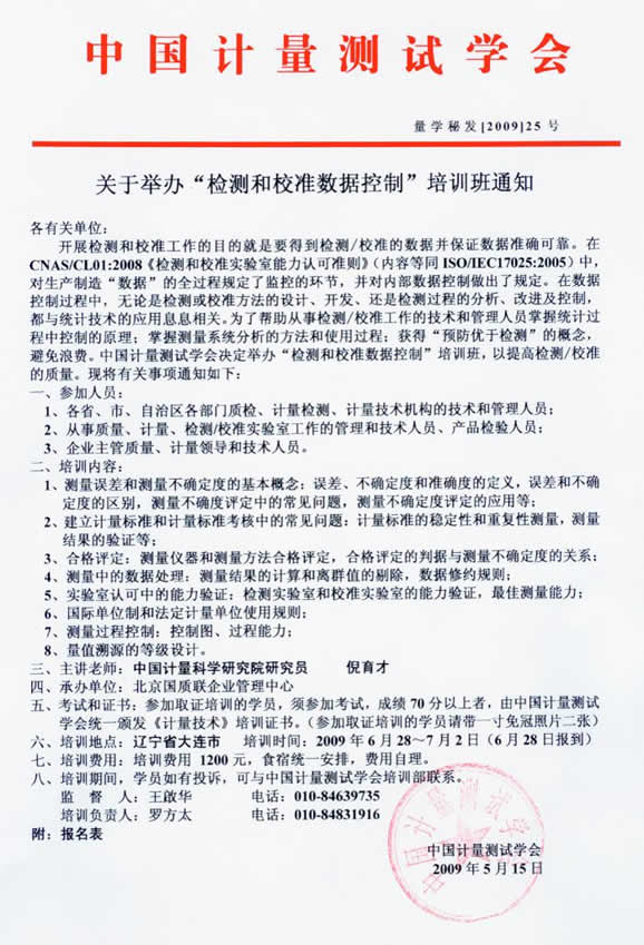 關(guān)于舉辦“檢測(cè)和校準(zhǔn)數(shù)據(jù)控制”培訓(xùn)班的通知
