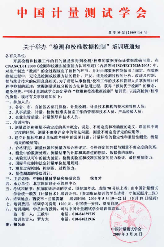 關(guān)于舉辦“檢測和校準(zhǔn)數(shù)據(jù)控制”培訓(xùn)班的通知