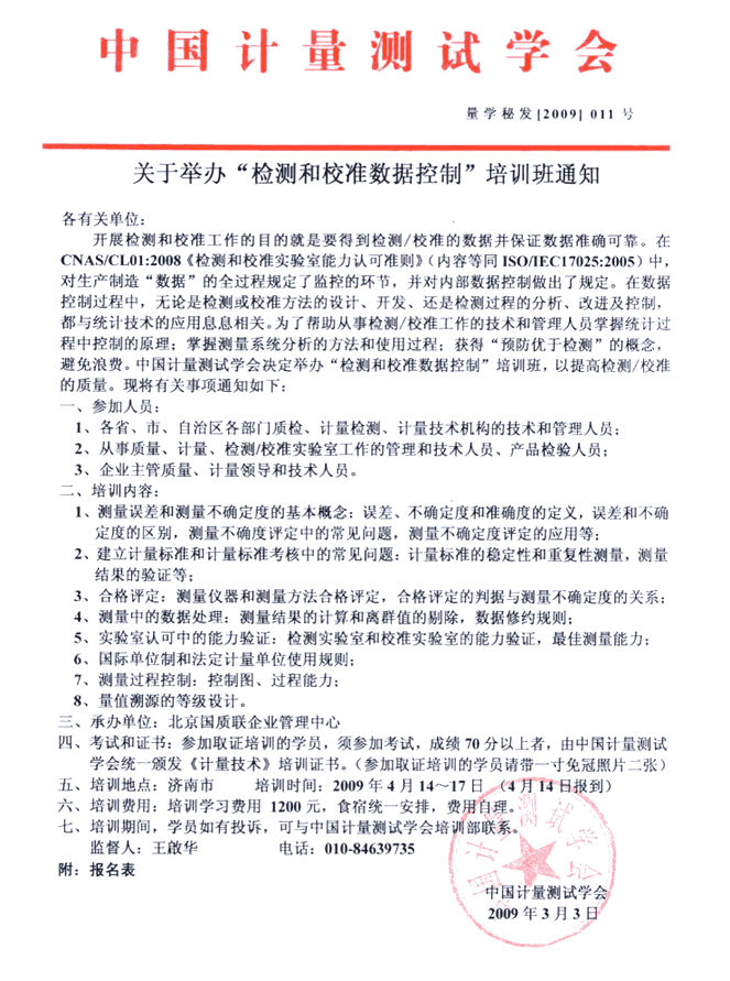 關于舉辦“檢測和校準數據控制”培訓班的通知