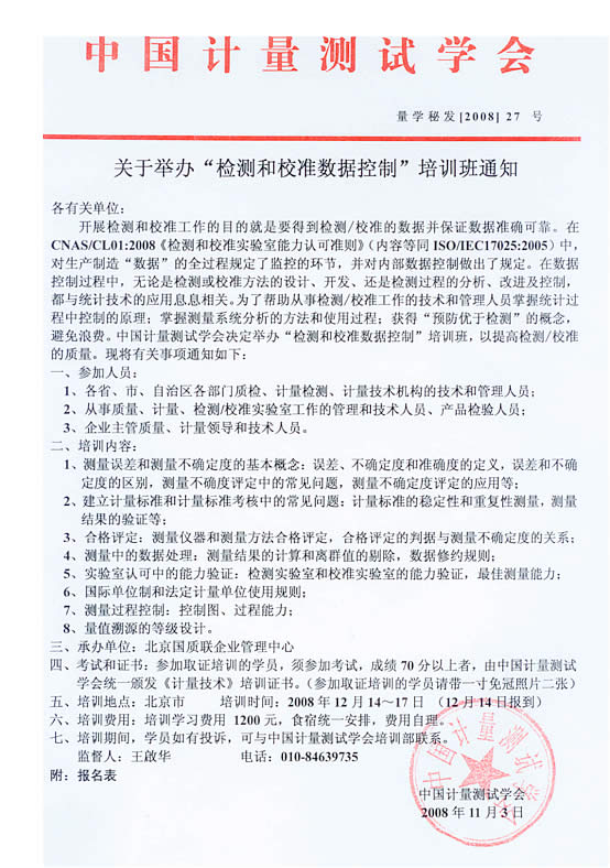 關于舉辦“檢測和校準數據控制”培訓班的通知
