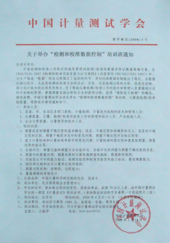 關于舉辦“檢測和校準數據控制”培訓班的通知