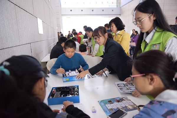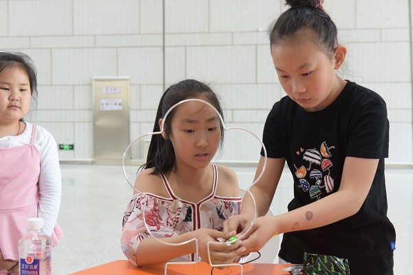 “‘城市逐光’——光電賽車競速賽”,分為制作和競速兩個過程,在工作人員的幫助指導下,家長和孩子們一起動手制作太陽能賽車,競速賽每名選手利用事先準備好的光源,照射在賽車太陽能板上,將光能轉化為電能,驅動賽車前進。孩子們在活動中既加強了動手能力,增長了光學知識,又加深了親子間的了解和溝通。