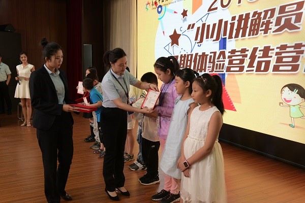 23名營員共完成了200余場次的講解任務,評委會就營員的每次講解,分別從內容陳述、表達效果和整體形象等方面進行評分,最終評選出了9名優勝者,獲得優秀“小小講解員”稱號。全體營員均獲得“2018年小小講解員暑期體驗營”結營證書及紀念獎品。