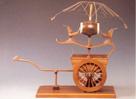 記里鼓車是中國古代用于計算道路里程的車 ,由“記道車”發展而來。有關記道車的文字記載最早見于漢代劉歆的《西京雜記》:“漢朝輿駕祠甘泉汾陽……記道車,駕四,中道。”可見至遲在西漢時期,即已有了這種可以計算道路里程的車。到后來,因為加了行一里路打一下鼓的裝置,故名“記里鼓車”。 記里鼓車是一種會自動記載行程的車輛,是中國古代社會的科學家、發明家研制出的自動機械物體,被機器人專家稱為是一種中國古代機器人。