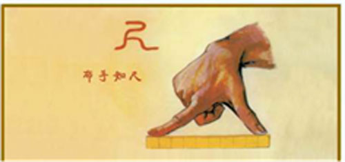 國(guó)家博物館、上海博物館各藏有一支商代的骨尺,皆約長(zhǎng)16厘米。古代的尺為什么如此之短呢?《大戴禮記》曰:“布指知寸,布手知尺。”如果古人身高160厘米,那么一指之寬約1.6厘米,伸開(kāi)姆指和食指之間的距離 ,正是16厘米。與《說(shuō)文》中尺字寫作 “ ”,即伸開(kāi)大拇指與食指的形象十分相似。古希臘哲學(xué)家普羅塔戈?duì)栍芯涿裕?ldquo;人是萬(wàn)物的度量衡”,此與“布手知尺……”的哲學(xué)思想同樣是具有經(jīng)典性質(zhì)的。 距離,正是16厘米。與《說(shuō)文》中尺字寫作 “ ”,即伸開(kāi)大拇指與食指的形象十分相似。