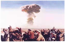 大家都知道原子彈是威力巨大的殺傷武器。原子彈是由90%以高濃縮鈾或環239裂變時放出的中子生成的,一公斤鈾235或環239全部裂變,能釋放18000噸梯恩梯當量的能量,一顆原子彈的核裝藥一般為15至25公斤鈾235或6至8公斤钚239。鈾在正常壓力下的密度約為19克/立方厘米,對一定裂變物質,密度越高而臨界質量越小。實際上,天然鈾中同位素鈾235的豐度僅0.72%,按原子彈要求必須達到90%以上,然后釆取電磁分離、氣體擴散和熱擴散三種方法生產高濃鈾。原子彈是靠利用核反應的光熱輻射、沖擊波和放射性造成殺傷和破壞作用的,以及造成大面積釋放放射性污染。核反應過程非常迅速,微秒級的時間內即可完成。因此,在核武器爆炸周圍形成極高的溫度,加熱周圍空氣使之急速膨脹,產生高壓沖擊波。原子彈爆炸的強烈光波,能使成千上萬人雙目失明,6千多度的高溫,能把一切化為灰燼,放射雨能使一些人在20年中緩慢死亡。沖擊波形成的狂風,能把所有的建筑物摧毀。